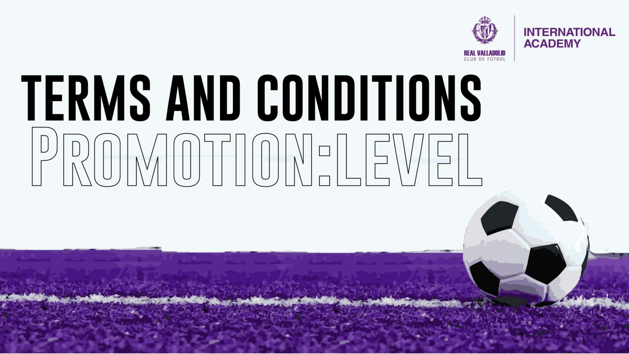 To participate and benefit from the present Promotion, users must formalize their registration to Real Valladolid International Academy in our system (see point 4, programs applicable to the promotion) by applying the code LEVEL and make the payment to the account indicated within the established deadlines (before 23:59h on April 6th 2022).